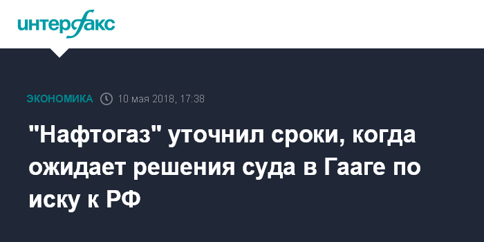 Москва. 10 мая. INTERFAX.RU - НАК "Нафтогаз Украины" ожидает, что трибунал при постоянной палате третейского суда в Гааге в первом квартале 2019 года примет решение в рамках иска компании к РФ в связи с утратой активов НАК в Крыму, сообщила пресс-служба компании.