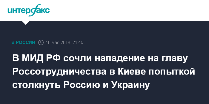 Москва. 10 мая. INTERFAX.RU - Нападение на руководителя Россотрудничества в Киеве является очередной попыткой столкнуть Россию и Украину, заявила официальный представитель МИД РФ Мария Захарова.
