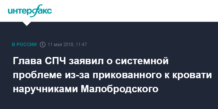 "О серьезных проблемах со здоровьем Малобродского Совет узнал от членов ОНК Москвы накануне поздно вечером. Совет с удивлением обнаружил, что на больничной койке тот оказался прикованным наручниками", - добавили в СПЧ.