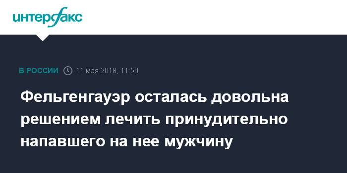 Фельгенгауэр осталась довольна решением лечить принудительно напавшего на нее мужчину