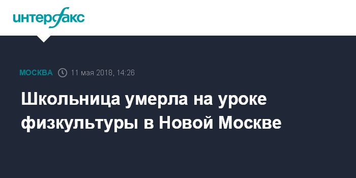 Москва. 11 мая. INTERFAX.RU - Московская школьница скончалась на уроке физкультуры, сообщила представитель столичного главка Следственного комитета РФ Юлия Иванова.