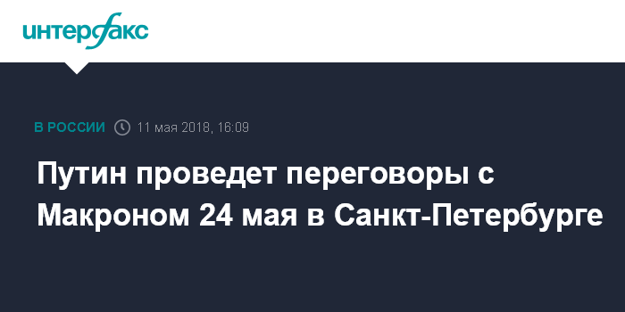 Путин проведет переговоры с Макроном 24 мая в Санкт-Петербурге