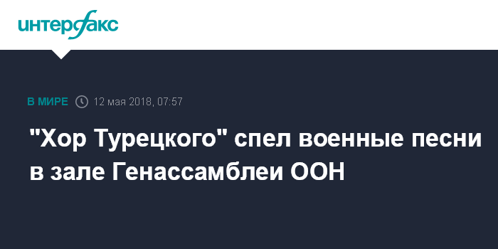 Москва. 12 мая. INTERFAX.RU - Российские вокальные коллективы "Хор Турецкого" и "SOPRANO Турецкого" в пятницу выступили в зале Генассамблеи штаб-квартиры ООН.