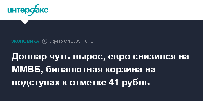 Бивалютная корзина (операционный индикатор ЦБ РФ, $0,55 и EUR 0,45) в первые минуты была в диапазоне 40,85-40,98 рубля. По расчетам на 10:08 мск, стоимость корзины поднялась до 40,98 рубля, что на 3 копейки выше уровня закрытия предыдущего дня и всего на 2 копейки ниже уровня предполагаемой поддержки ЦБ РФ.