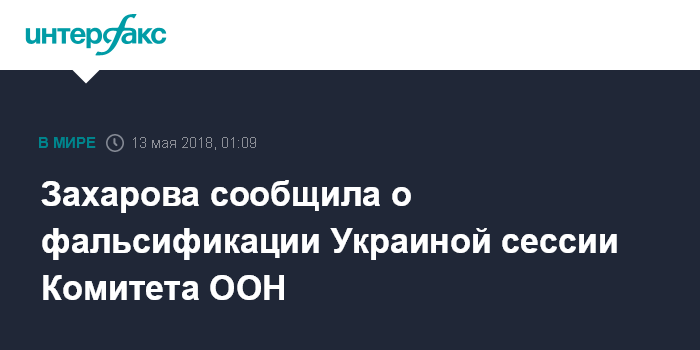 Москва. 13 мая. INTERFAX.RU - Официальный представитель МИД РФ Мария Захарова опубликовала на своей странице в Фейсбуке доказательства того, что власти Украины организовали мероприятие на тему недостоверных новостей, представив его как часть сессии Комитета ООН.