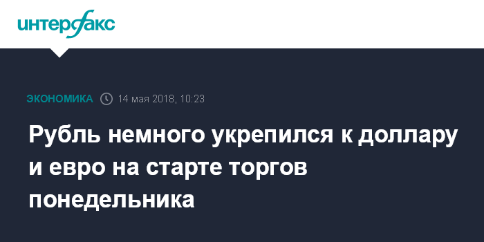 По мнению экспертов "Интерфакс-ЦЭА", рубль немного укрепляется к доллару и евро на старте торгов в ожидании основных налоговых платежей мая. Цены на нефть при этом продолжают умеренное снижение с максимальных отметок за 3,5 года, так как на рынке сохраняется неопределенность, связанная с решением США вернуть санкции в отношении Ирана и дальнейшими планами ОПЕК+.