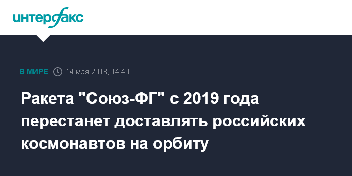 "Предполагается уже с 2019 года отказаться от ракеты-носителя "Союз-ФГ" с украинской системой управления. Ей на смену придет "Союз 2.1а" с системой российского производства. Ранее такие ракеты использовались для вывода космических грузовиков на орбиту, но пилотируемые корабли они не выводили. Теперь в августе 2019 года запланирован первый испытательный полет пилотируемого "Союза" на такой ракете пока в беспилотном режиме", - сказал собеседник агентства.