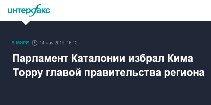 Москва. 14 мая. INTERFAX.RU - Парламент Каталонии в понедельник избрал Кима Торру на пост главы женералитата (главы регионального правительства), сообщают местные СМИ.