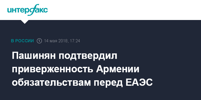 Москва. 14 мая. INTERFAX.RU - Новый премьер Армении Никол Пашинян подтверждает неизменность внешнеполитического курса властей страны под его руководством и приверженность международным обязательствам республики, в том числе в рамках Евразийского экономического союза (ЕАЭС).