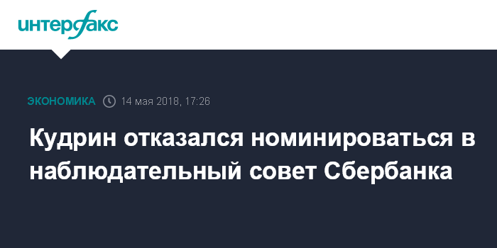 Москва. 14 мая. INTERFAX.RU - Наблюдательный совет Сбербанка России исключил из списка кандидатов для вхождения в его состав главу ЦСР, экс-министра финансов Алексея Кудрина, говорится в материалах кредитной организации.