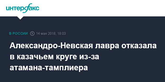 Москва. 14 мая. INTERFAX.RU - Петербургские казаки вынуждены перенести из Александро-Невской лавры казачий круг, на котором планируют избрать нового атамана вместо ушедшего ранее к тамплиерам руководителя.