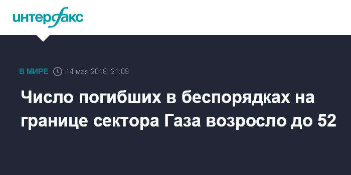 Ранее сообщалось, что в районе административной границы сектора Газа с Израилем собрались около 10 тыс. палестинцев. Некоторые протестующие пытались пересечь пограничное заграждение. Кроме того, на всплеск протестных настроений палестинцев повлияло и открытие 14 мая нового американского посольства в Иерусалиме.