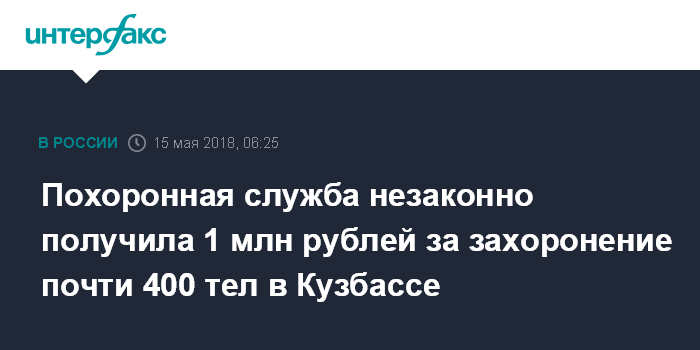 Москва. 15 мая. INTERFAX.RU - Следственный отдел города Осинники (Кемеровская область) возбудил дело по факту незаконного взимания денег с жителей города за захоронения тел, сообщает пресс-служба прокуратуры Кемеровской области во вторник.