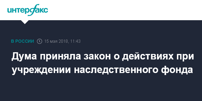 Дума приняла закон о действиях при учреждении наследственного фонда