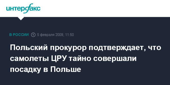 Москва. 5 февраля. ИНТЕРФАКС-ЦЕНТРАЛЬНАЯ ЕВРОПА - Самолеты ЦРУ действительно неоднократно совершали посадку в Польше для выполнения секретных заданий, заявил в четверг прокурор Роберт Маевский в интервью местному радио "Зет".