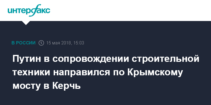 Путин в сопровождении строительной техники направился по Крымскому мосту в Керчь