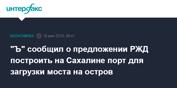 "Ъ" сообщил о предложении РЖД построить на Сахалине порт для загрузки моста на остров