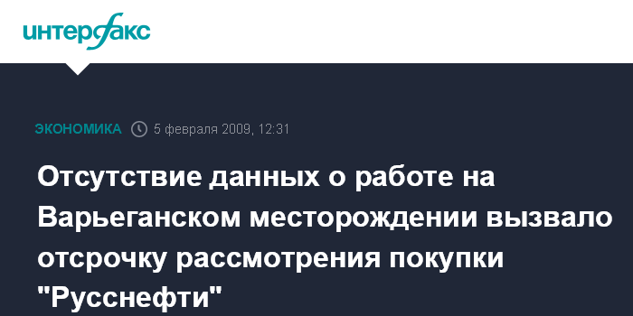 Отсутствие данных о работе на Варьеганском месторождении вызвало отсрочку рассмотрения покупки "Русснефти"