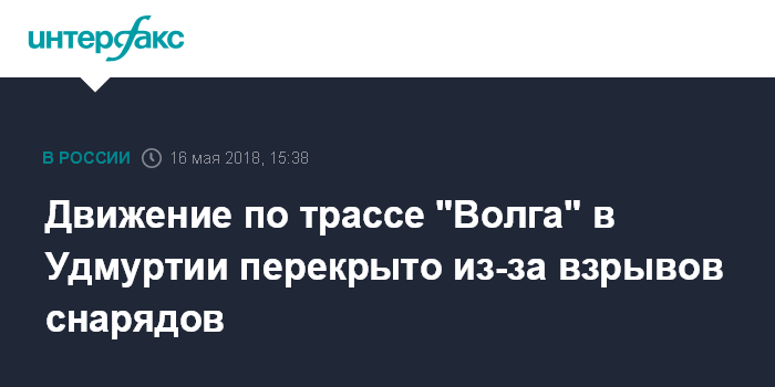 Москва. 16 мая. INTERFAX.RU - В Удмуртии в среду из-за взрывов боеприпасов близ Поселка Пугачево, вызванных природным пожаром, перекрыт участок федеральной трассы М7, сообщается в среду на сайте администрации Ижевска.