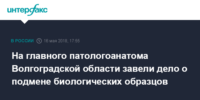 На главного патологоанатома Волгоградской области завели дело о подмене биологических образцов