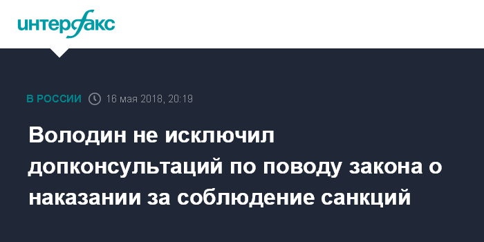 Володин не исключил допконсультаций по поводу закона о наказании за соблюдение санкций