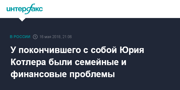 Москва. 16 мая. INTERFAX.RU - У бывшего вице-президента банка ВТБ Юрия Котлера, тело которого обнаружили в среду в московской квартире, были проблемы в семье, усугубленные бедственным финансовым положением, сообщил "Интерфаксу" информированный источник.