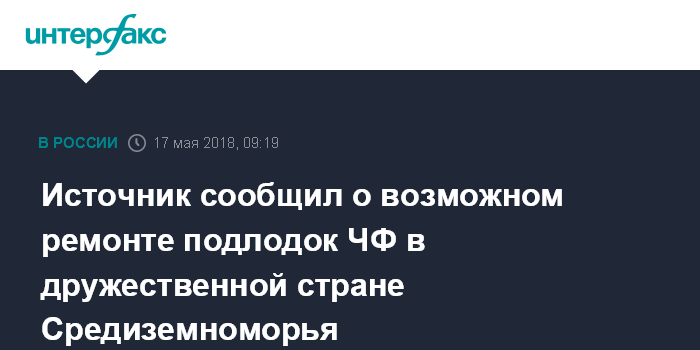 Москва. 17 мая. INTERFAX.RU - В связи с постоянным нахождением двух подводных лодок Черноморского флота (ЧФ) проекта 636.3 "Великий Новгород" и "Колпино" в Средиземном море уже в ближайшее время встанет вопрос их текущего ремонта с докованием, сообщил в четверг "Интерфаксу" военно-дипломатический источник.
