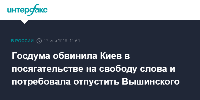 Госдума обвинила Киев в посягательстве на свободу слова и потребовала отпустить Вышинского