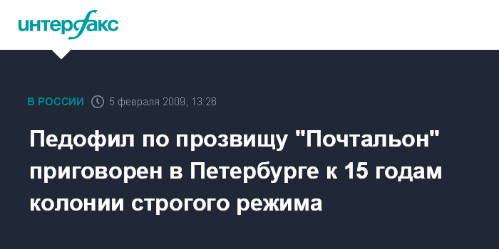 Педофил по прозвищу "Почтальон" приговорен в Петербурге к 15 годам колонии строгого режима