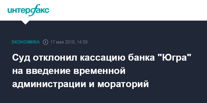 Суд отклонил кассацию банка "Югра" на введение временной администрации и мораторий