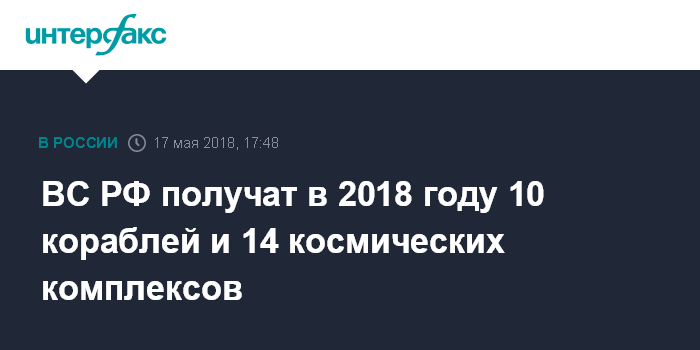 ВС РФ получат в 2018 году 10 кораблей и 14 космических комплексов