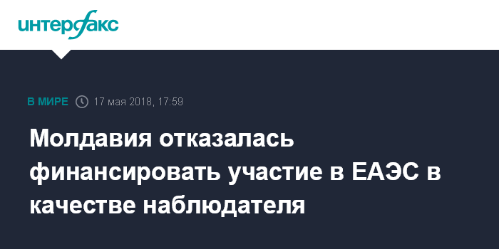 Москва. 17 мая. INTERFAX.RU - Правительство Молдавии не будет финансировать участие республики в качестве наблюдателя в Евразийском экономическом союзе (ЕАЭС), заявил премьер-министр республики Павел Филип.