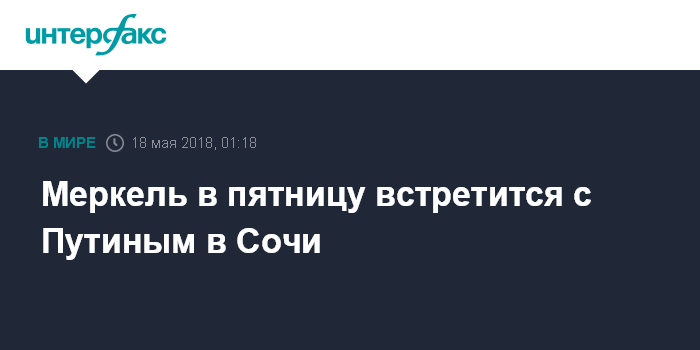 Она станет первым европейским лидером, с которым Владимир Путин встретится после вступления в должность президента. Следующим будет лидер Франции Эммануэль Макрон, с которым президент России проведет переговоры на 24-25 мая "на полях" Петербургского международного экономического форума.