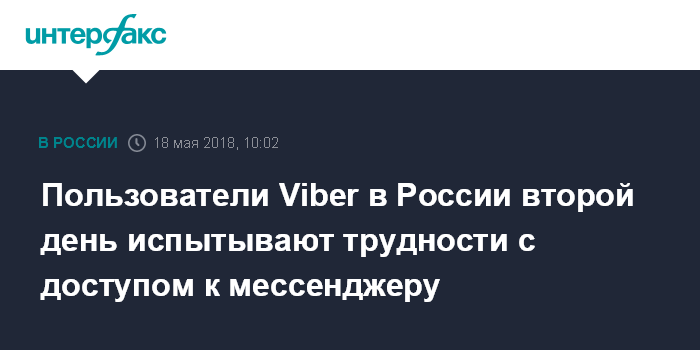 Москва. 18 мая. INTERFAX.RU - Российские пользователи Viber второй день испытывают трудности с доступом к мессенджеру. Сбой произошел накануне днем, и работа приложения до сих пор полностью не восстановлена, жалуются пользователи.