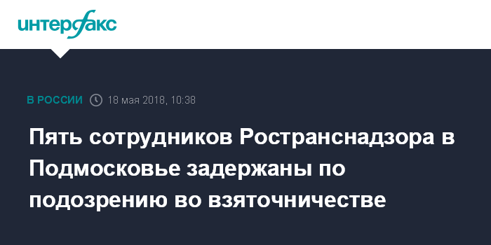 Пять сотрудников Ространснадзора в Подмосковье задержаны по подозрению во взяточничестве