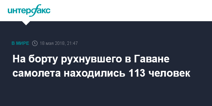 На борту рухнувшего в Гаване самолета находились 113 человек