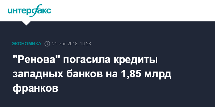 "Ренова" погасила кредиты западных банков на 1,85 млрд франков