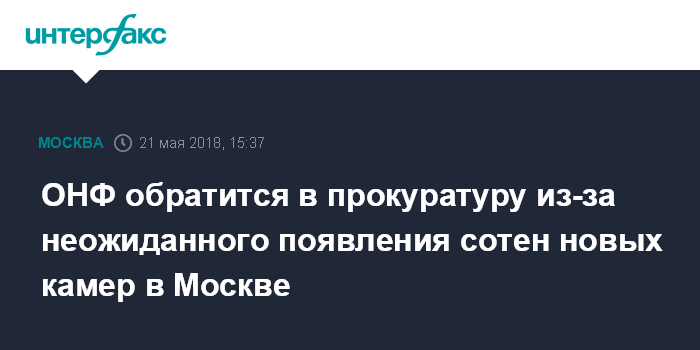 Москва. 21 мая. INTERFAX.RU - Активисты Общероссийского народного фронта (ОНФ) обратятся в прокуратуру с просьбой проверить законность установки без предупреждения новых камер на дорогах Москвы, сообщили "Интерфаксу" в пресс-службе движения.
