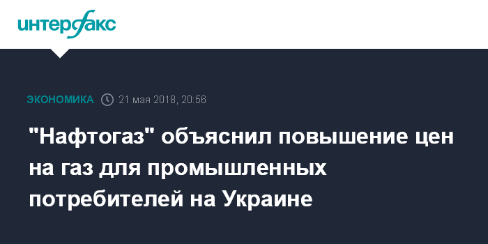 Москва. 21 мая. INTERFAX.RU - Решение НАК "Нафтогаз Украины" повысить цены на природный газ для промышленных потребителей - до 9,953 тыс. грн за 1 тыс. куб. м (с НДС) - связано с увеличением цен на европейском рынке.