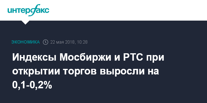 Индексы Мосбиржи и РТС при открытии торгов выросли на 0,1-0,2%