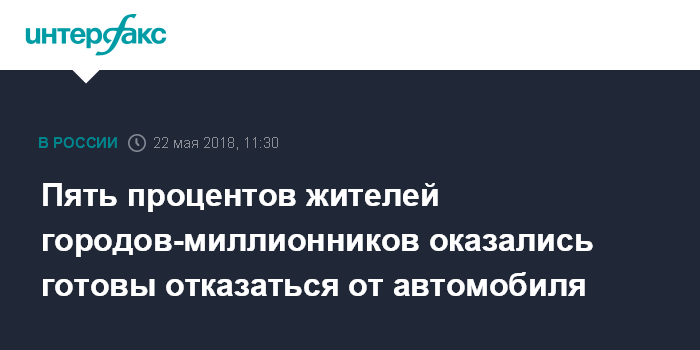 Москва. 22 мая. INTERFAX.RU - Всероссийский центр изучения общественного мнения (ВЦИОМ) и "Яндекс.Такси" представили данные исследования среди владельцев личных автомобилей, проживающих в городах-миллионниках, о потенциальной готовности отказаться от использования частного автотранспорта.