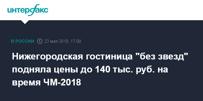 Нижегородская гостиница "без звезд" подняла цены до 140 тыс. руб. на время ЧМ-2018