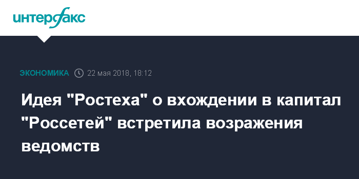 По словам источника агентства в одном из ведомств, "Ростех" и "Россети" должны были предоставить детальные обоснования своих предложений в Росимущество, но не сделали этого (по состоянию на 18 мая, когда ведомства должны были направить в правительство согласованную позицию - ИФ), а анализ обосновывающей информации, направленной в Минэнерго в конце апреля, показал "отсутствие у ПАО "Россети" проработанной позиции по предложениям, изложенным в письме ГК "Ростех" (именно "Ростех" ранее обратился в правительство с подобной инициативой - ИФ). При этом в профильное ведомство не был представлен и "совместно сформированный план действий", который анонсировал "Ростех" в первоначальном обращении в правительство.