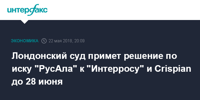 Лондонский суд примет решение по иску "РусАла" к "Интерросу" и Crispian до 28 июня