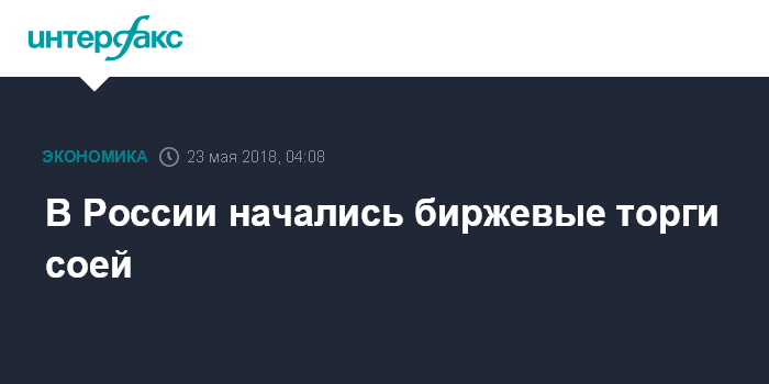 Москва. 23 мая. INTERFAX.RU - В России в среду начинаются биржевые торги соей, сообщает Московская биржа. Торги будут проходить на Национальной товарной бирже (входит в группу "Московская биржа" ). Будут проводиться торги поставочными форвардными контрактами и своп контрактами на сою, предусматривающими расчеты по сделкам от трех дней.