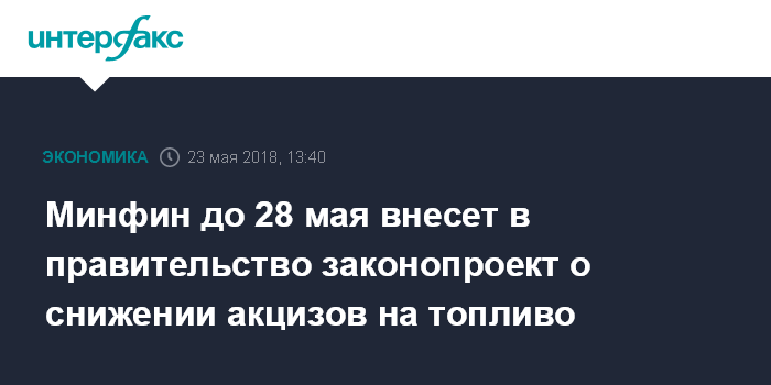Минфин до 28 мая внесет в правительство законопроект о снижении акцизов на топливо