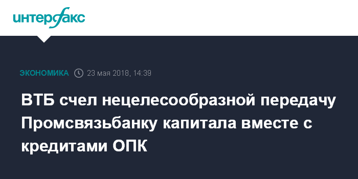 ВТБ счел нецелесообразной передачу Промсвязьбанку капитала вместе с кредитами ОПК