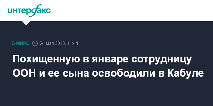 Москва. 24 мая. INTERFAX.RU - Миссия ООН по содействию Афганистану (МООНСА) сообщила об освобождении в Кабуле сотрудницы организации и ее ребенка, которые с января удерживались неизвестными в качестве заложников.