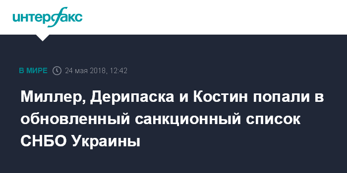 Миллер, Дерипаска и Костин попали в обновленный санкционный список СНБО Украины