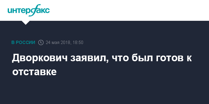 Москва. 24 мая. INTERFAX.RU - Бывший вице-премьер РФ Аркадий Дворкович заявил, что был готов к своей отставке .